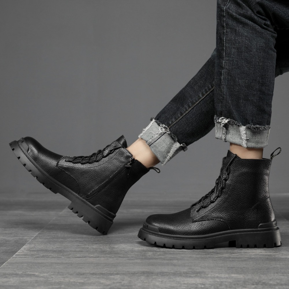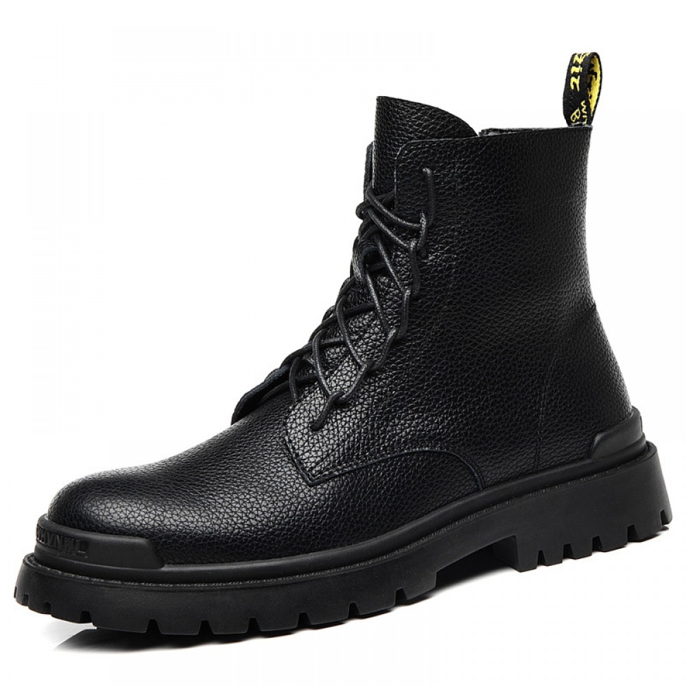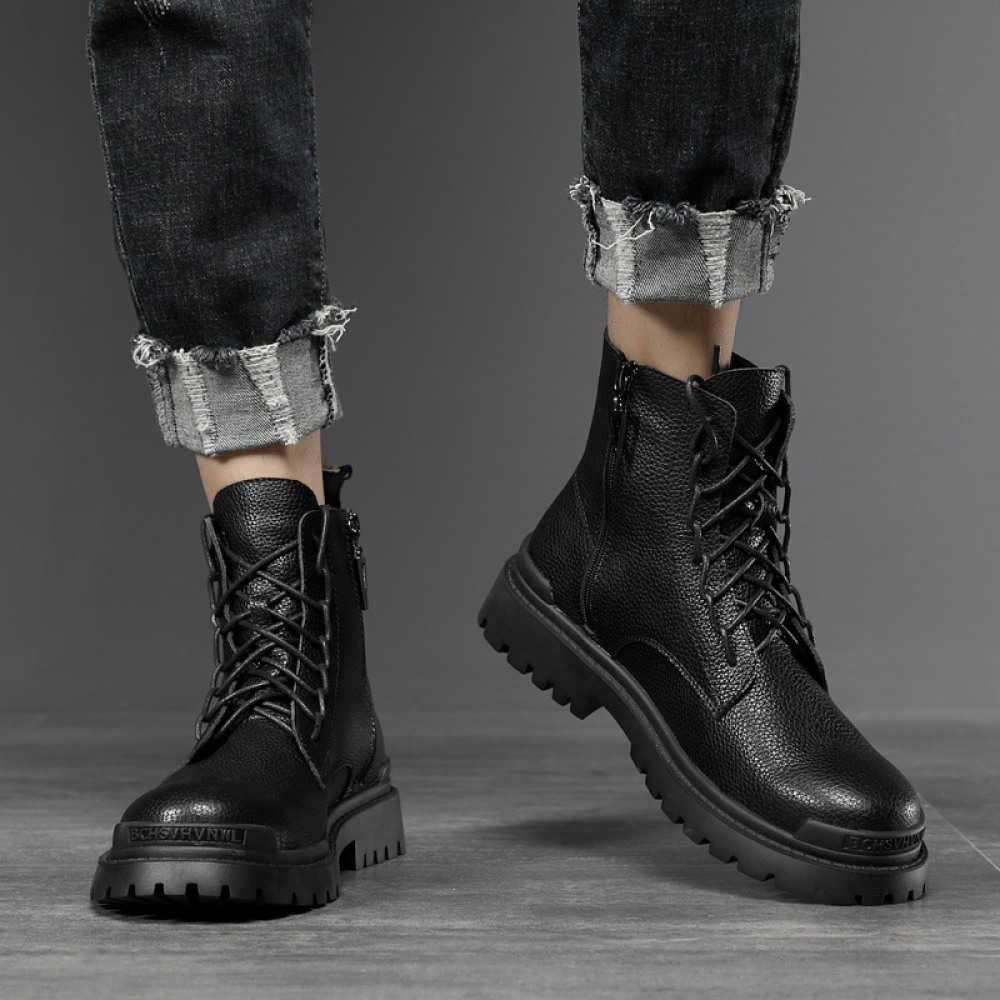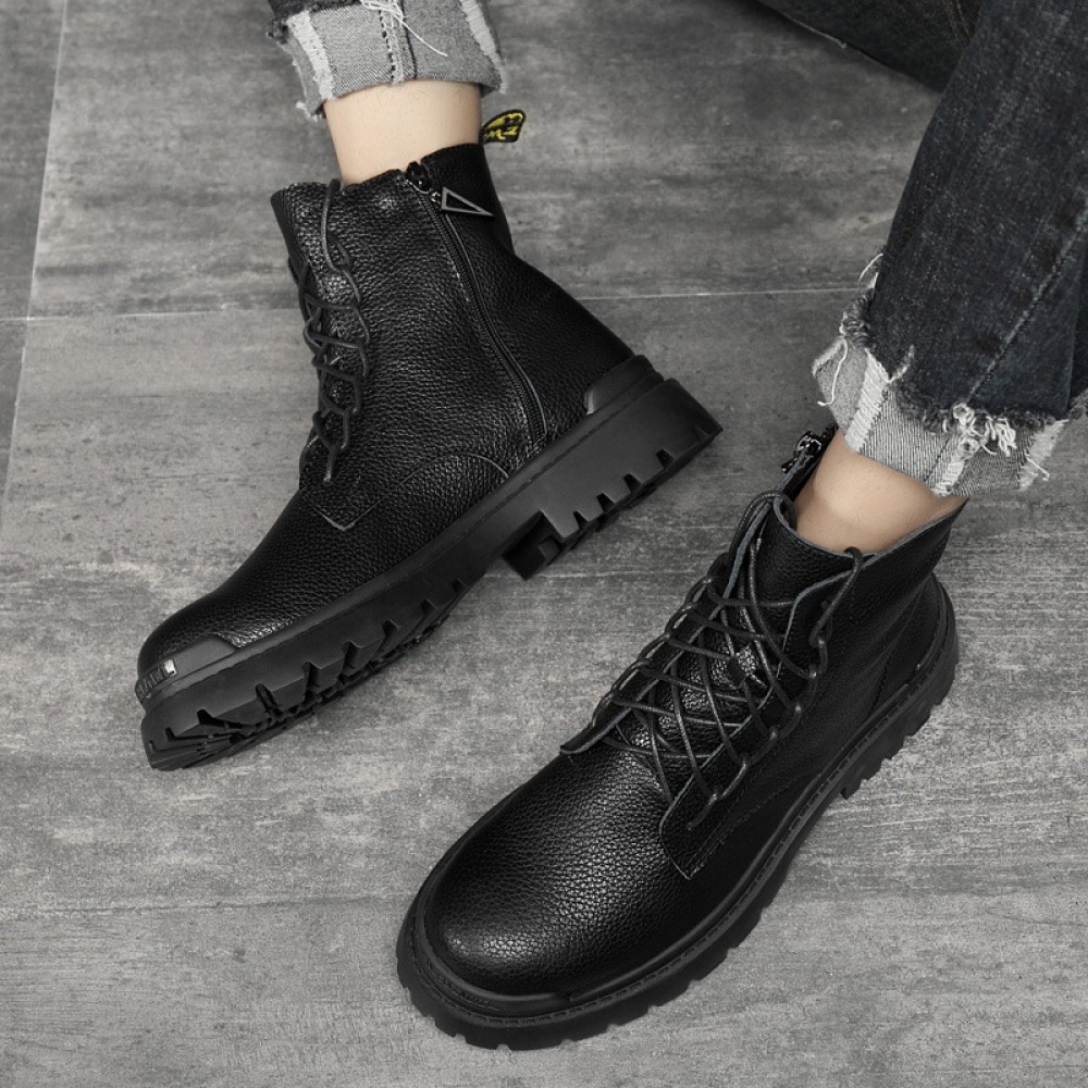 Autumn New Leather Men's Leather Boots Front Lace-Up Low-Heel Martin Boots Mens Shoes