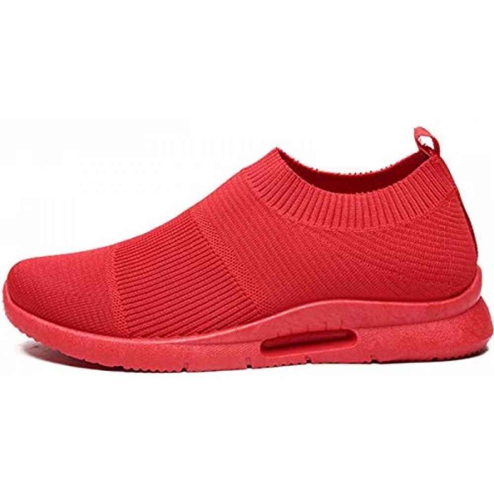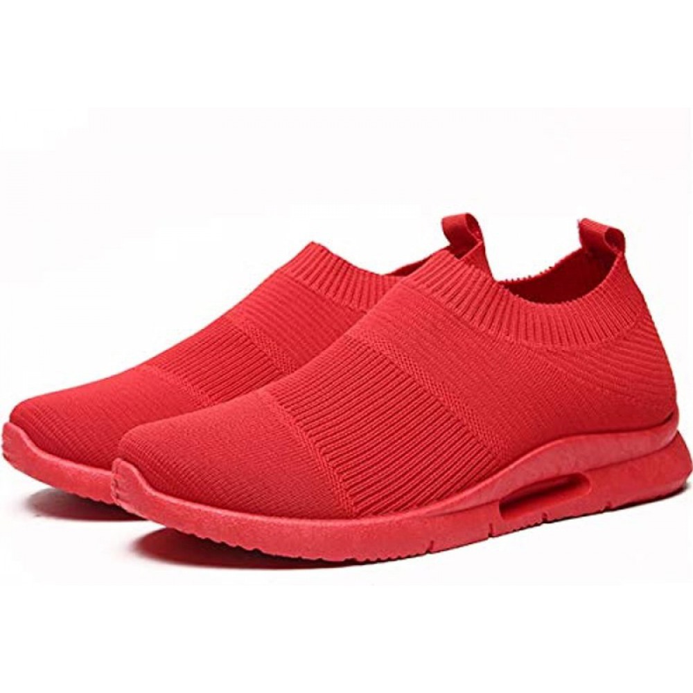 Men's Running Shoes Breathable Knit Slip On Sneakers Lightweight Athletic Shoes Casual Sports Shoes High Top All Red