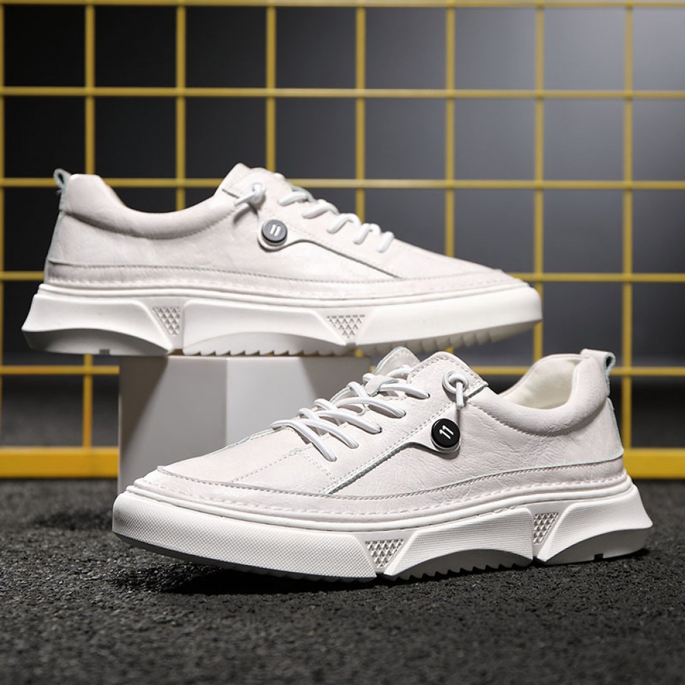 Men's Leather Board Shoes Trendy White Casual Shoes