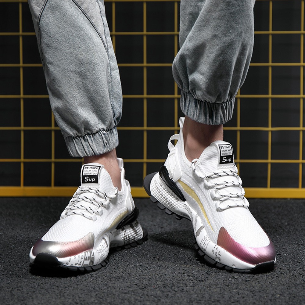 Mens Runing Shoes Walking Non Slip Blade Type Sneakers White