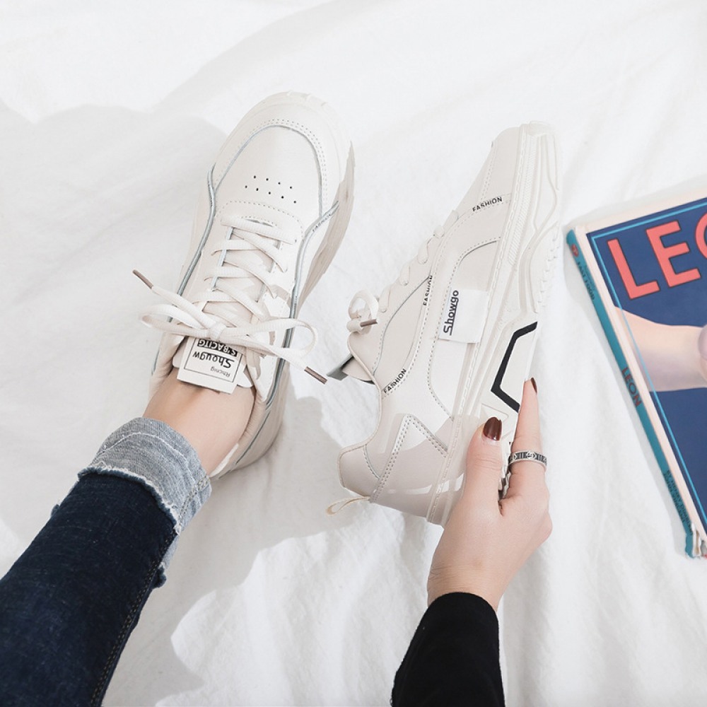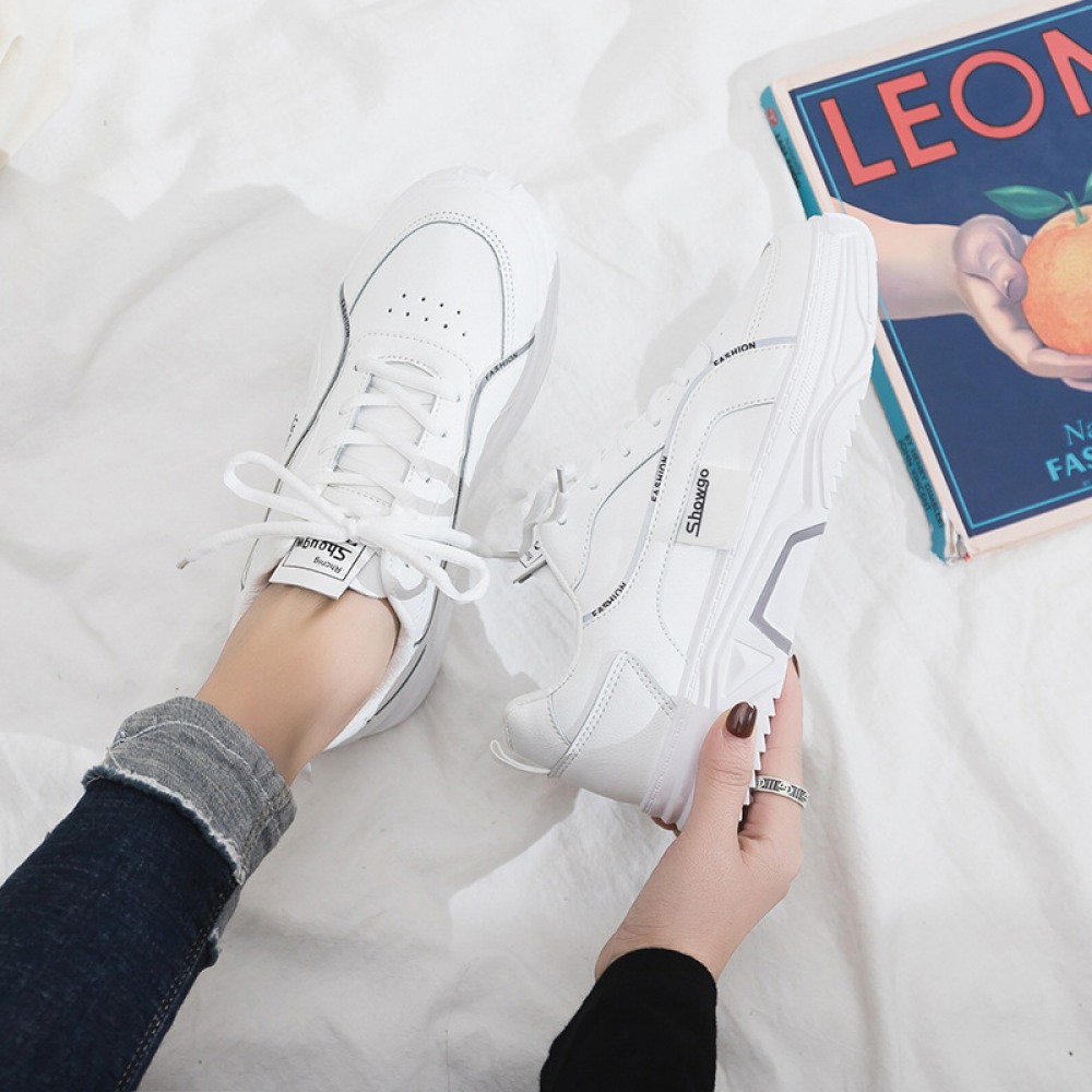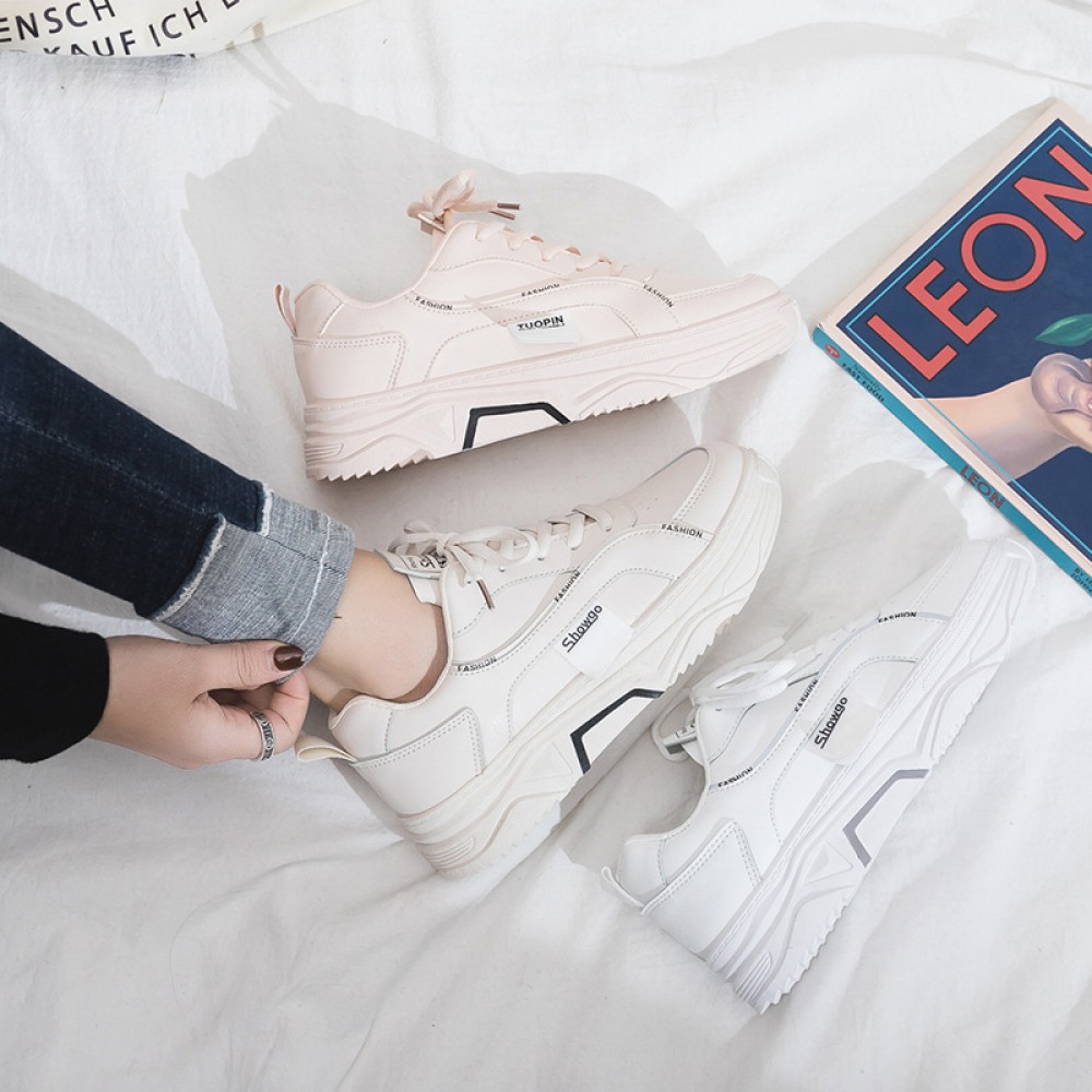 White Shoes Female Spring New Heightening Student Running Board Shoes Female Breathable Lace