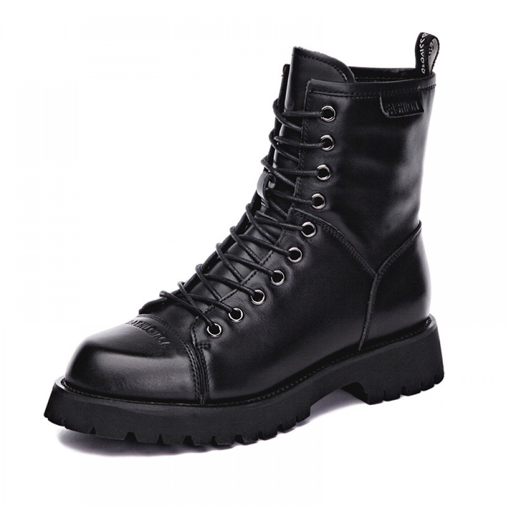 Autumn New Martin Boots Female Round Toe Thick Bottom Tube Black Short Boots Trend
