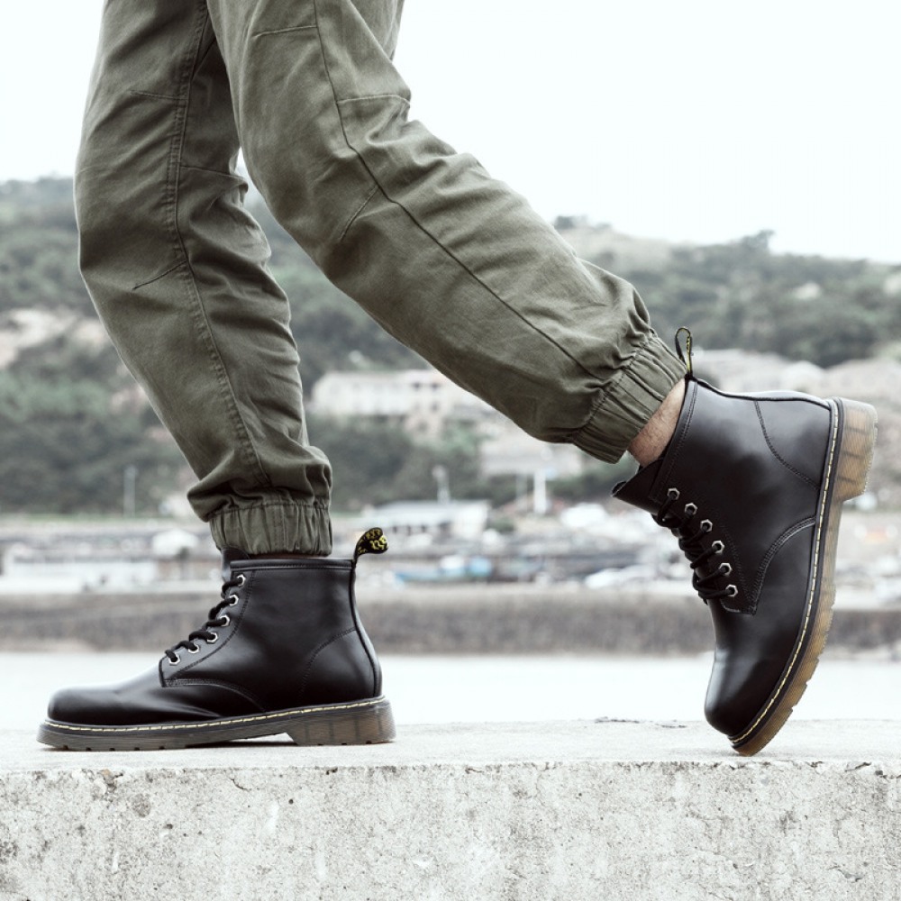 Autumn New Martin Boots Men's High-Top Short Boots Trendy Leather Mens Mid-Top Boots